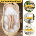4. Indoor & Outdoor Use: Our home freestanding bathtubs occupy only 0.66 square meters and weigh 16 lbs, perfect for home gardens, bathrooms, and outdoor events. Dual drain valves at the bottom ensure quick drainage after use.